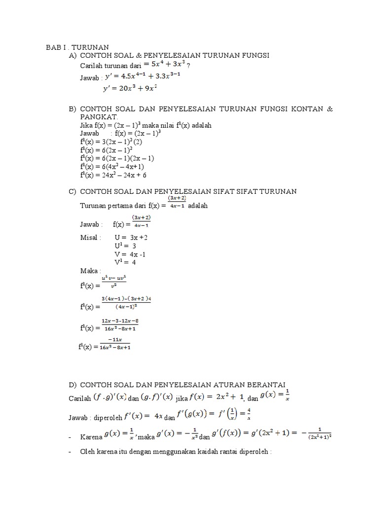 Yuk simak contoh soal dan pembahasan sifat turunan . Turunan pembahasan dan contoh soal matematika. turunan pembahasan dan contoh soal matematika. turunan pembahasan dan contoh soal matematika Pelajari juga soal contoh, dan contoh soal dan pembahasan sifat turunan